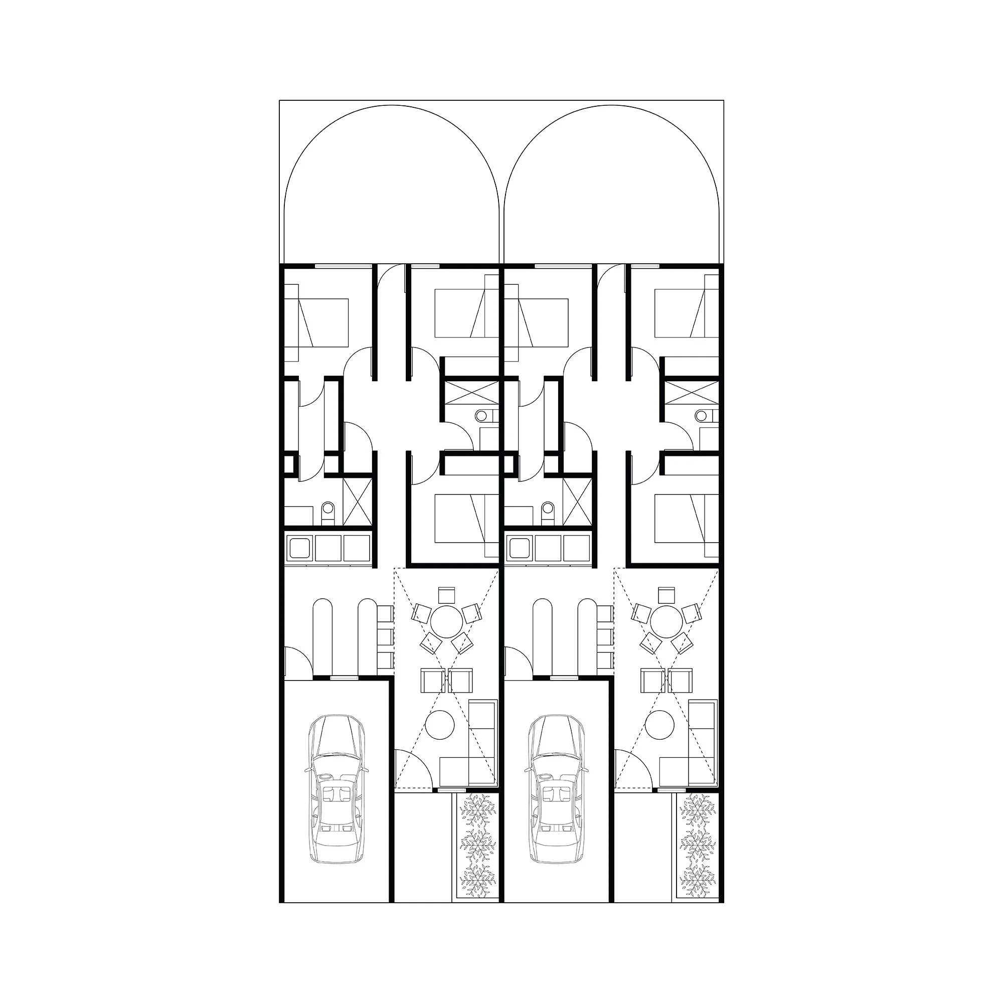 Dos casas gemelas ubicadas en el centro de Ciudad Juárez replantean la forma de habitar el tejido urbano consolidado. El proyecto reinterpreta la vivienda tradicional mediante una propuesta contemporánea de materiales simples y honestos, privilegiando funcionalidad y calidez. Los espacios se organizan alrededor de áreas sociales a doble altura, donde sala y comedor se convierten en el corazón del hogar, aportando amplitud, iluminación natural y una sensación espacial generosa dentro de un contexto denso y urbano.