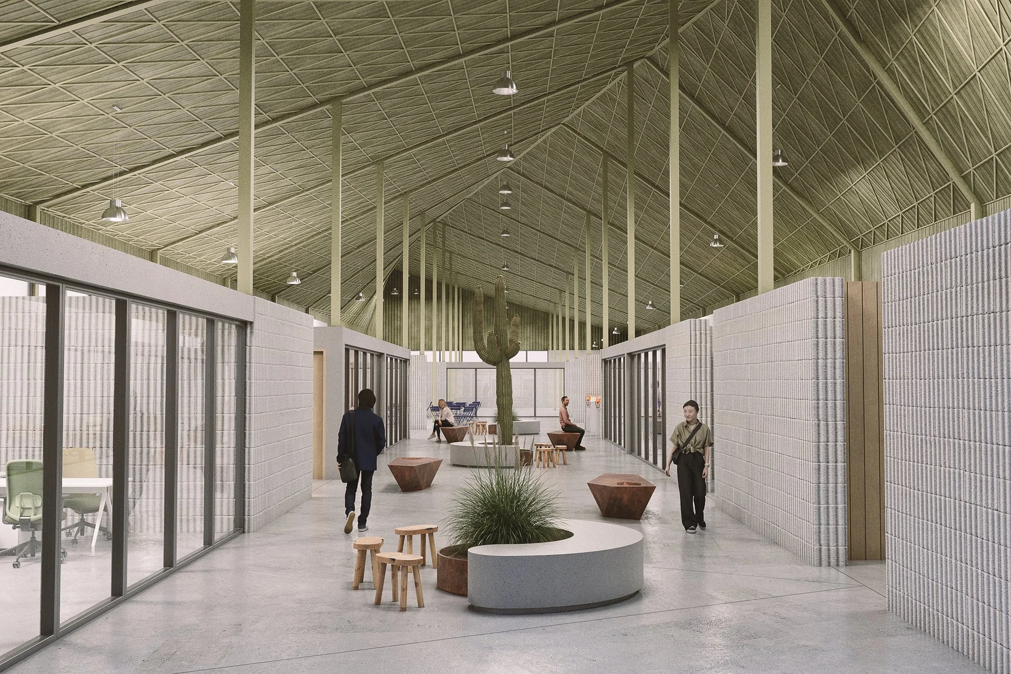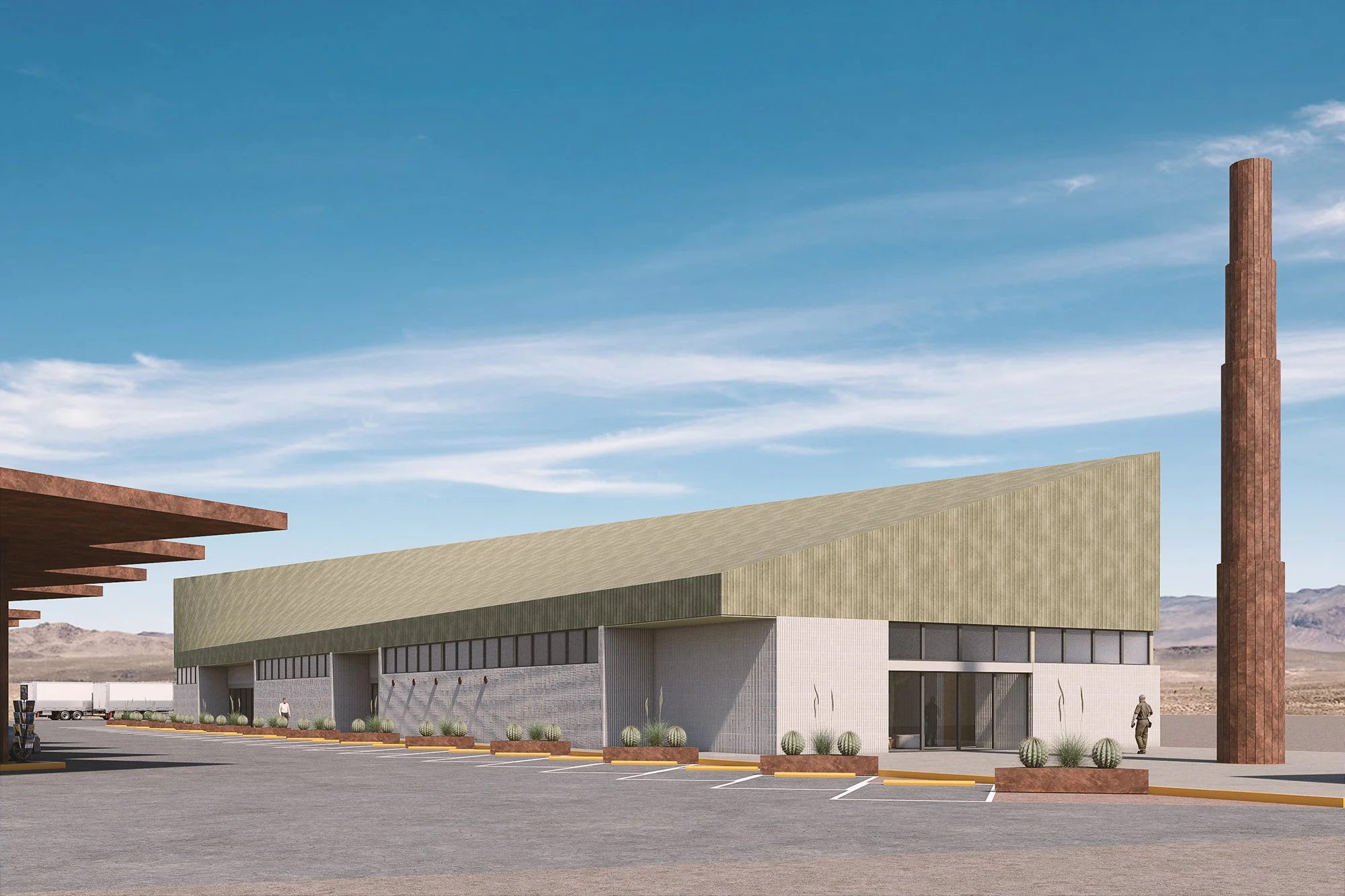 El anteproyecto contempla el desarrollo de una gasolinera con área comercial estratégica sobre la Carretera Federal No. 2, en el tramo Cd. Juárez–Ascensión, dentro de un predio de 7,290.98 m². El conjunto se ordena mediante una retícula modular de 7.00 m que estructura volúmenes simples, claros y atemporales. La propuesta prioriza eficiencia operativa, maniobras seguras para transporte pesado y flujos vehiculares definidos. La envolvente sobria y durable dialoga con el paisaje desértico y la escala carretera.